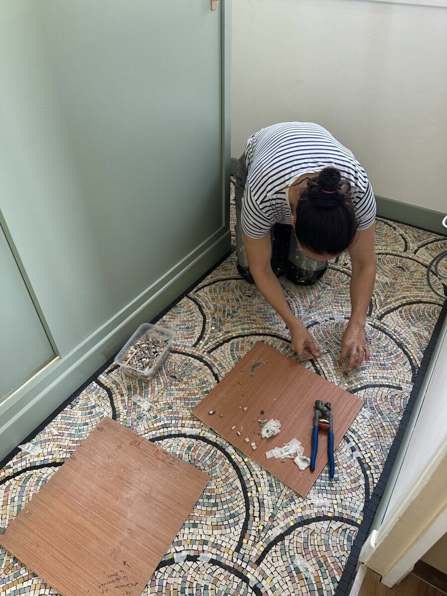 - Restauration de mosaïques patrimoniales : Eloïse excelle dans la restauration de mosaïques issues de différents contextes historiques et styles artistiques. Elle a notamment travaillé sur la restauration de la Basilique Notre Dame de la Daurade (2018/2019), où elle a effectué la recherche de matériaux originels pour la restauration de frises en mosaïque.